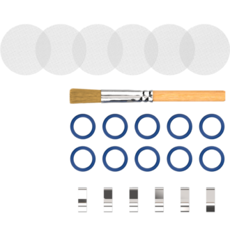El Juego de Piezas de Desgastes incluye todas las piezas de repuesto necesarias para renovar la Cámara de Relleno