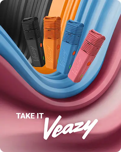 Elegante, ligero, disponible en cuatro colores llamativos. El Vaporizador VEAZY es una perfecta combinación de rendimiento, portabilidad y estilo, gracias a décadas de experiencia en la tecnología de la vaporización. Nuestro dispositivo más pequeño y accesible que nunca… e inequívocamente S&B